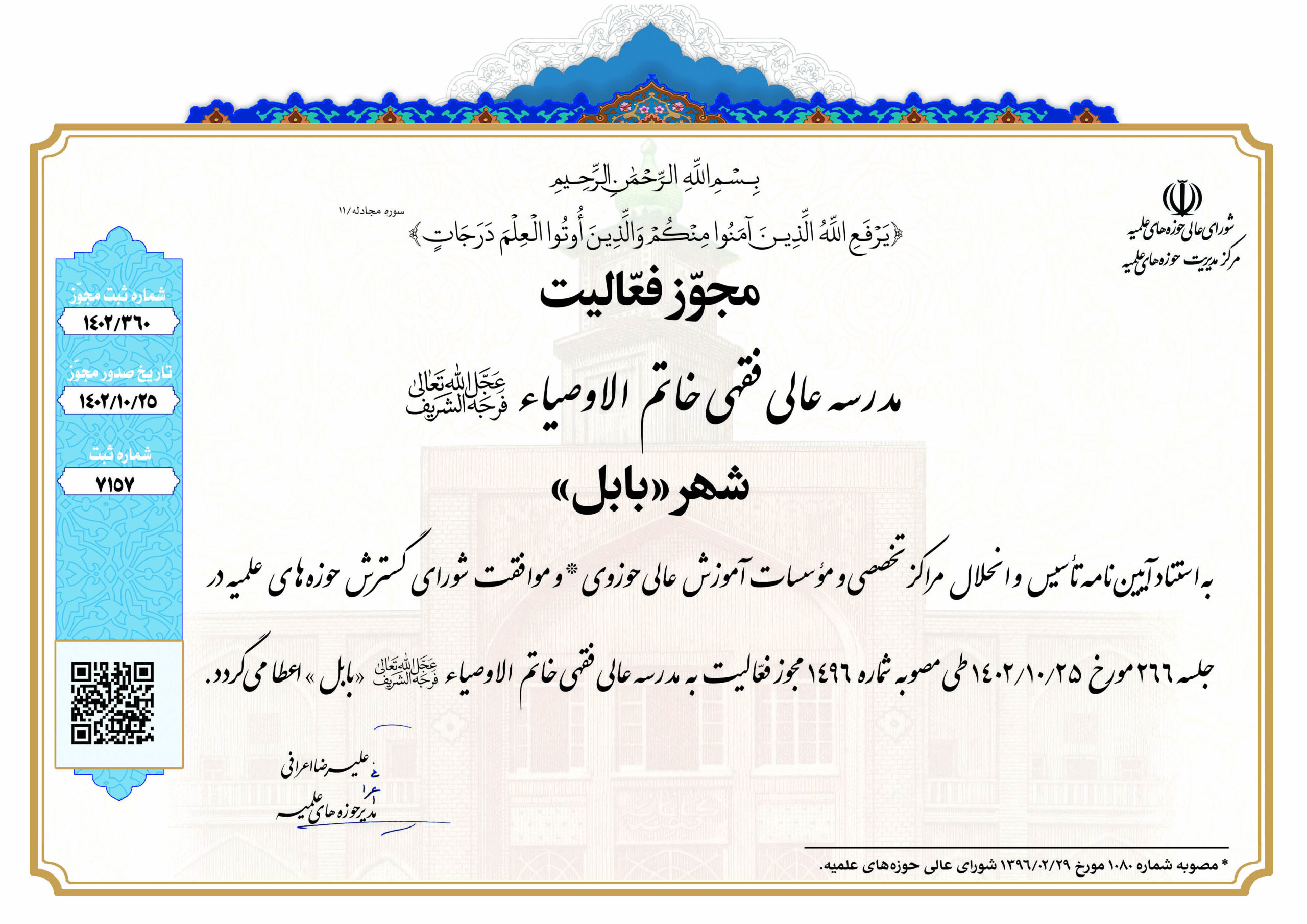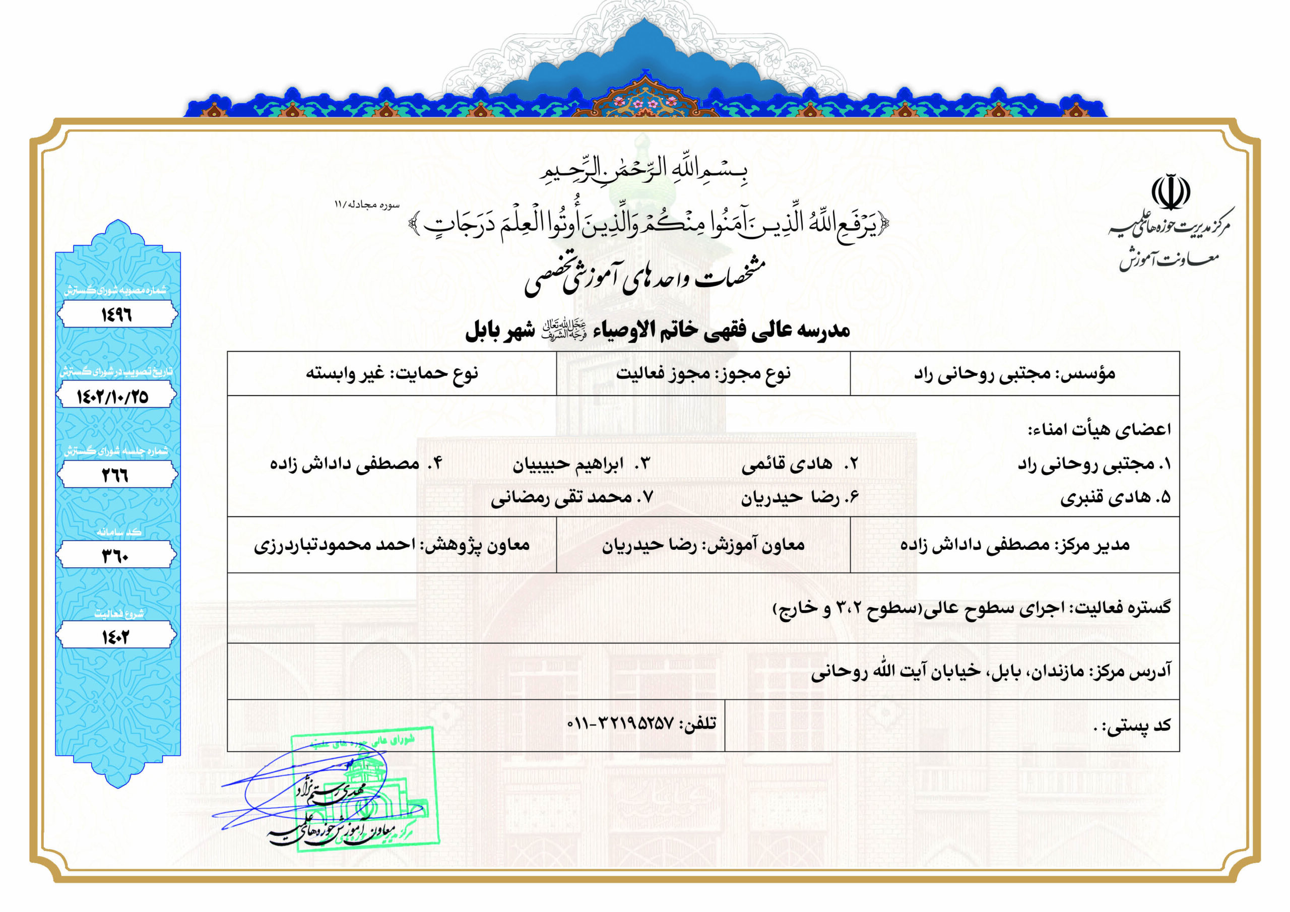 مدرسه عالی فقهی خاتم الاوصیاء (علیهالسلام) ـ بابل