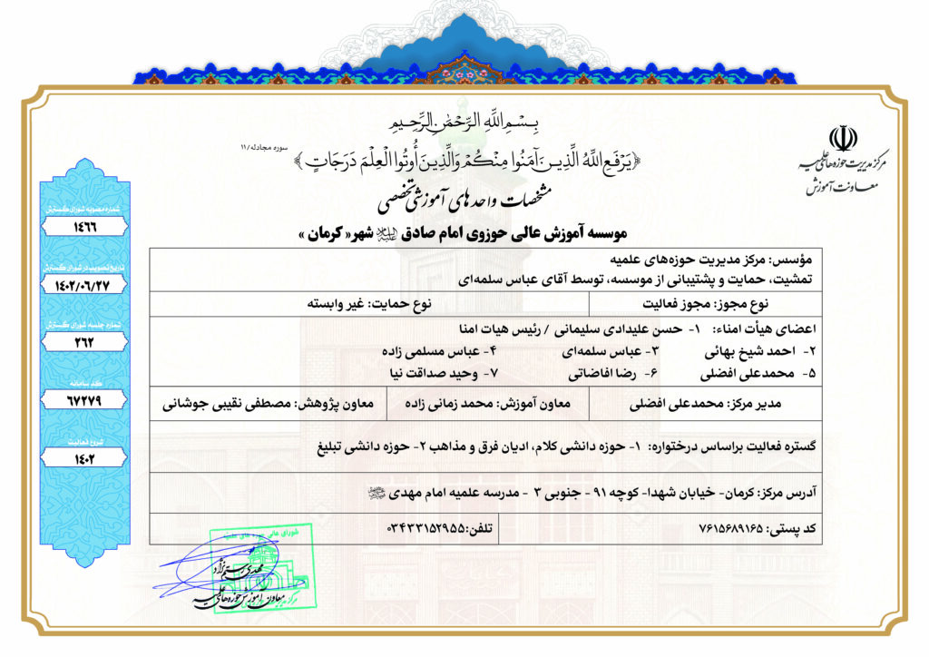 مؤسسه آموزش عالی حوزوی امام صادق(ع) ـ کرمان