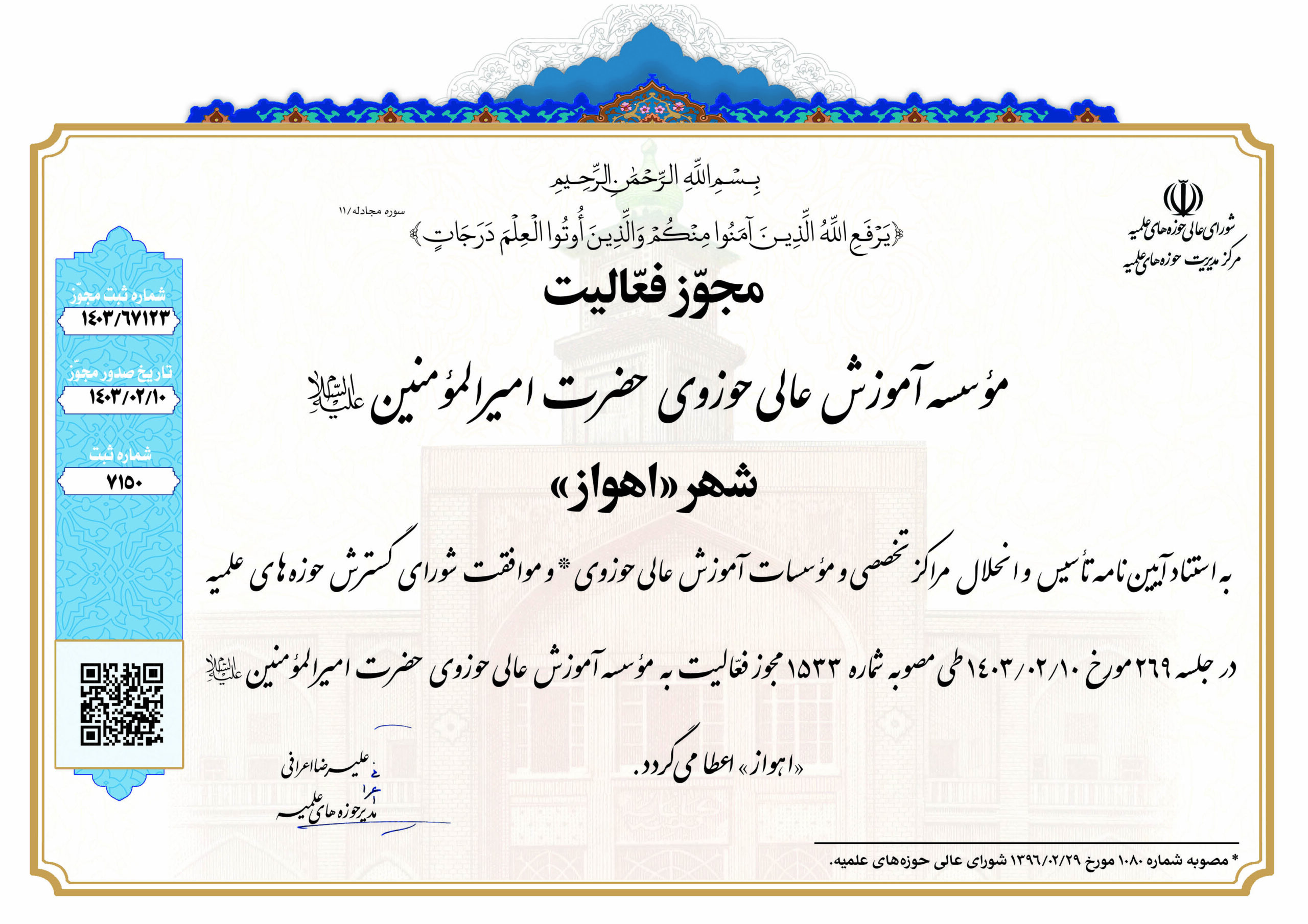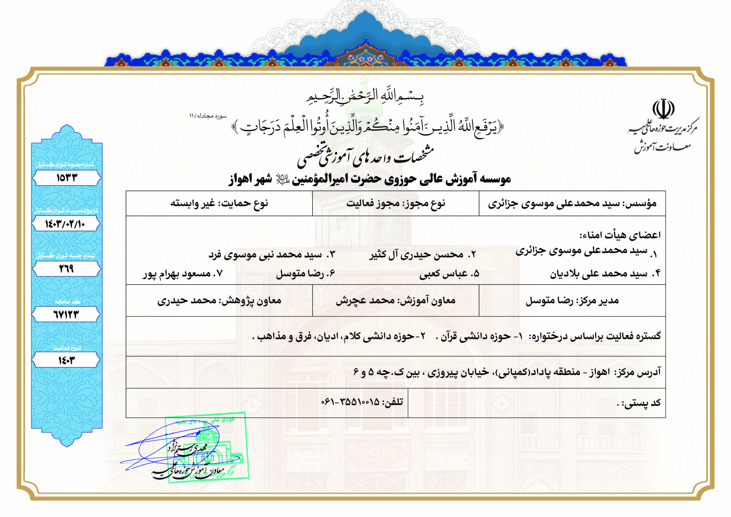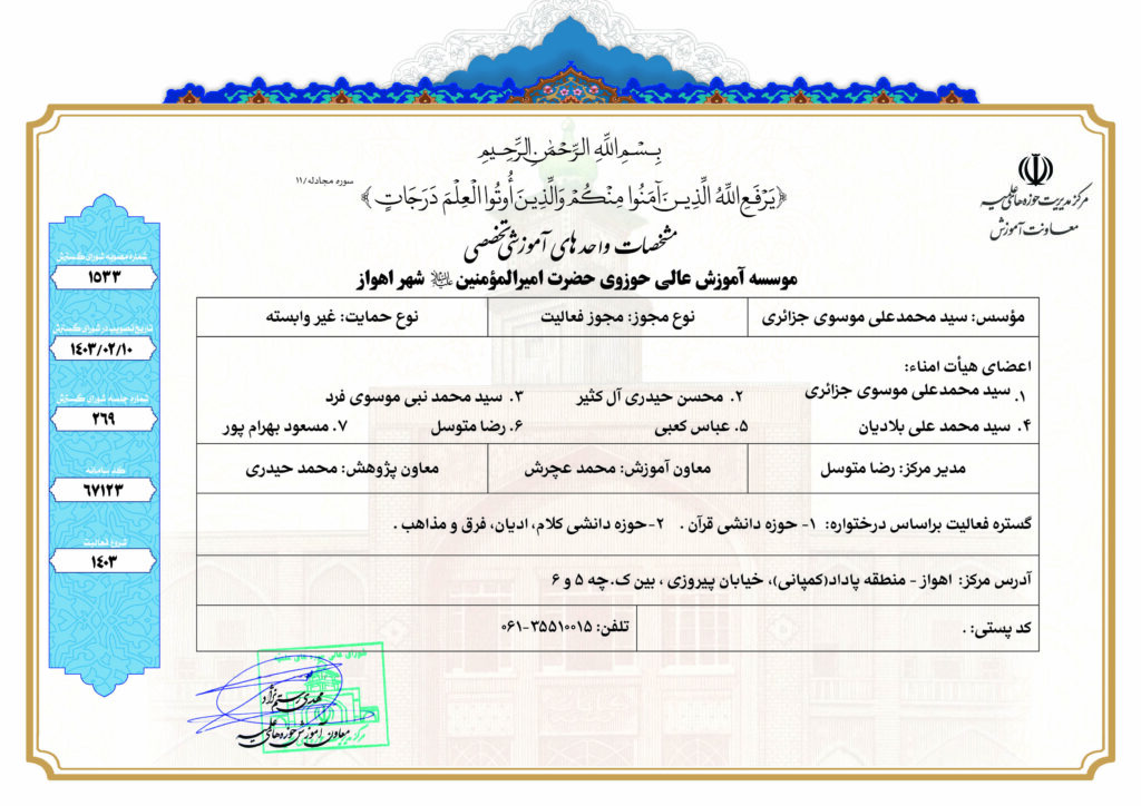مؤسسه آموزش عالی حوزوی امیرالمؤمنین(ع) ـ اهواز