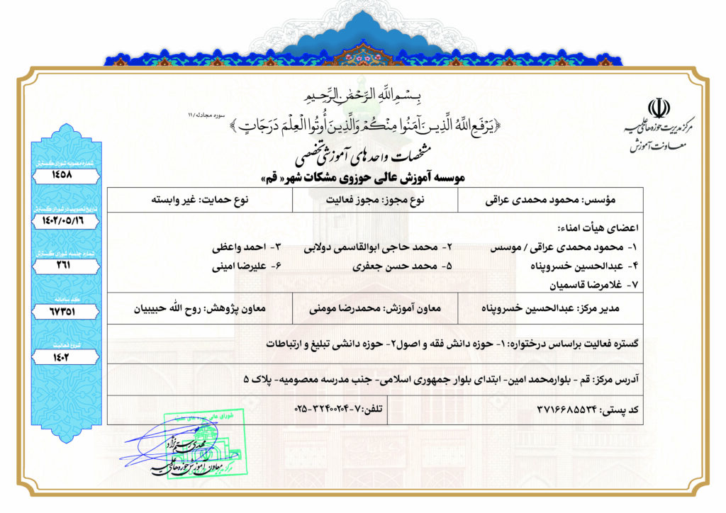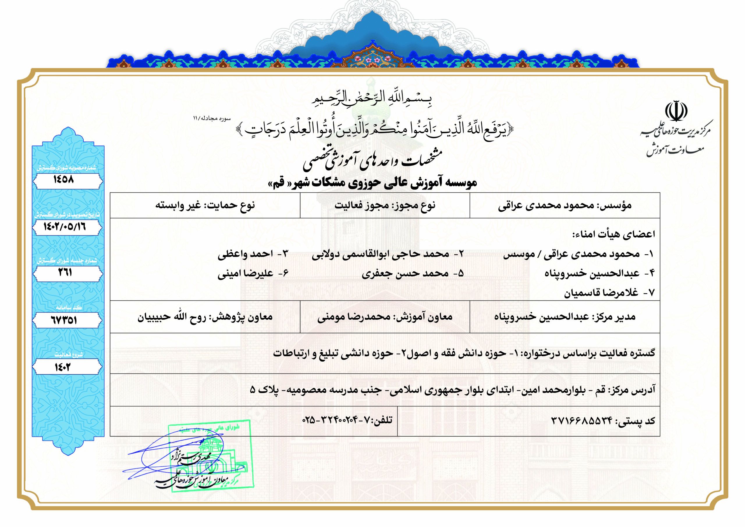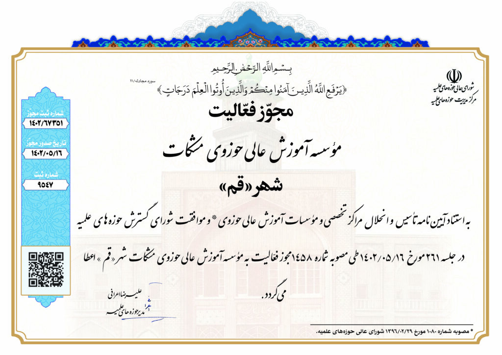 مؤسسه آموزش عالی حوزوی مشکات ـ قم