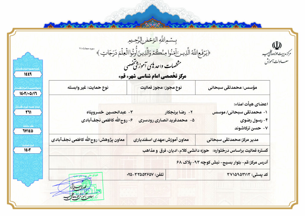 مرکز تخصصی امام شناسی ـ قم