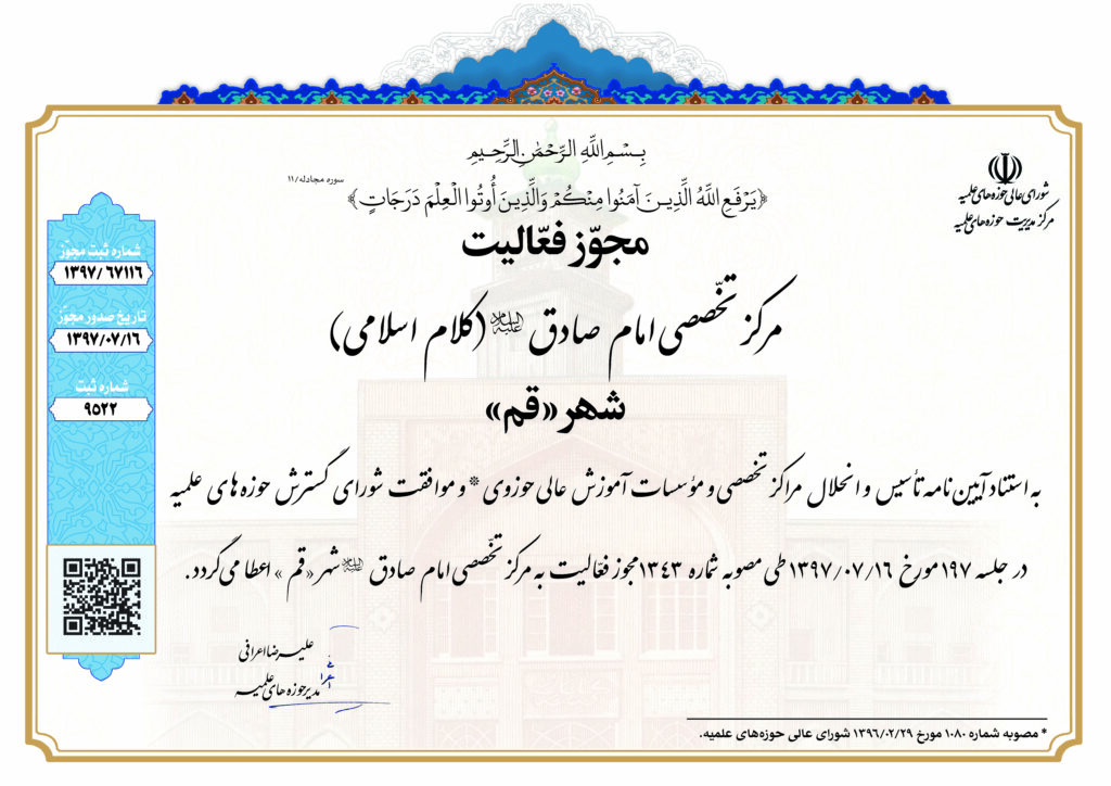 مرکز تخصصی امام صادق(علیهالسلام) ـ (کلام اسلامی) ـ قم