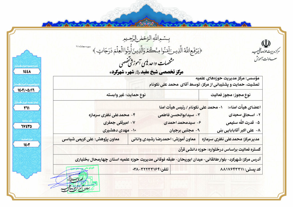 مرکز تخصصی شیخ مفید ـ شهرکرد