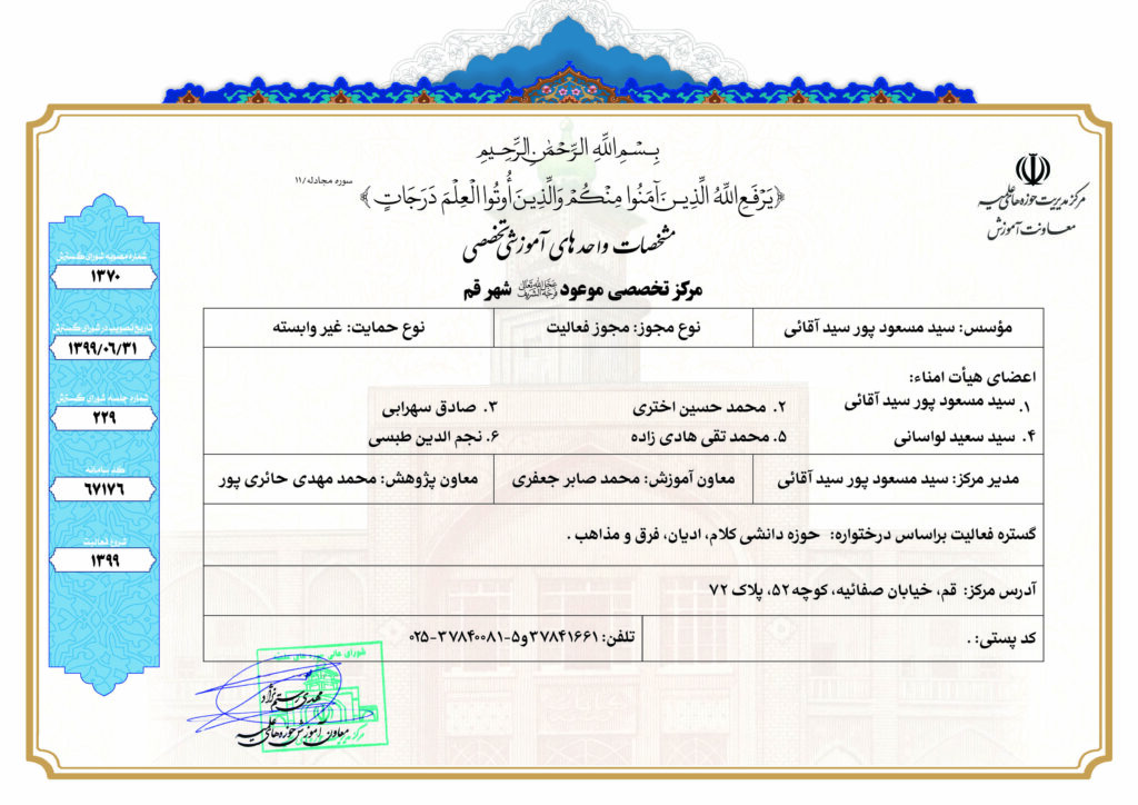 مرکز تخصصی موعود(عج) ـ قم